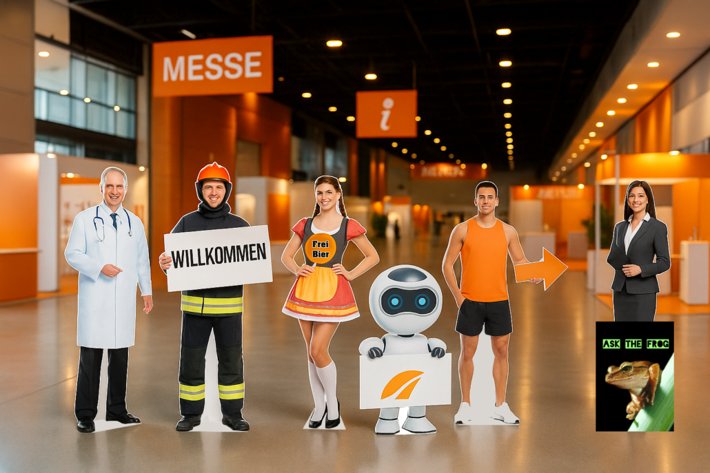 Diese Begriffe tauchen in organischen Suchanfragen immer wieder auf – wir führen sie konsistent, ohne Keyword-Stopfen. (Kleine Randnotiz: „Standee“ wird gerade im Event-Umfeld häufig verwendet.)